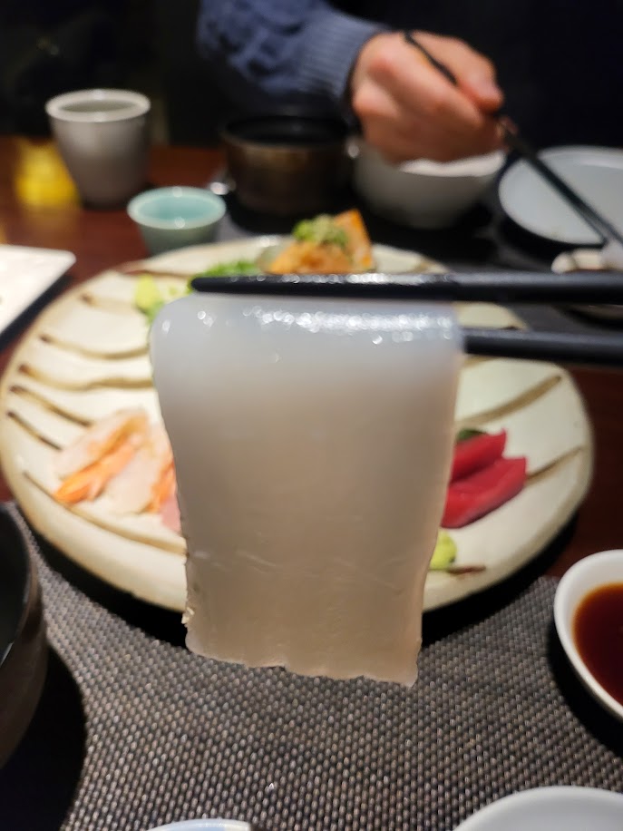 감성봇: 이렇게 부드럽고 끈적한 한치회는 처음이다.