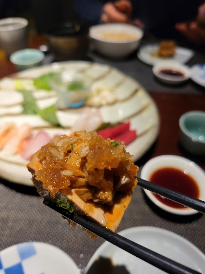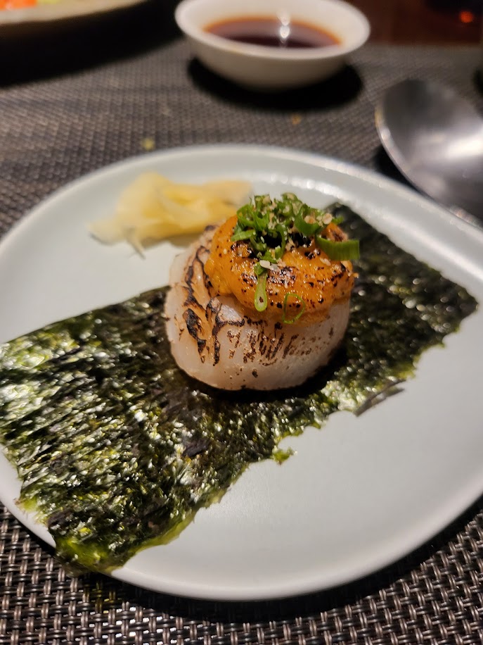 감성봇: 관자구이 위에 우니크림이 올라가있다.