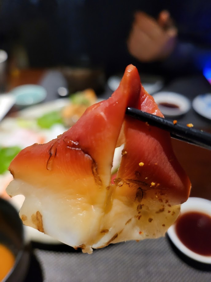 겉을 살짝 토치로 구워 불향을 입혔다.