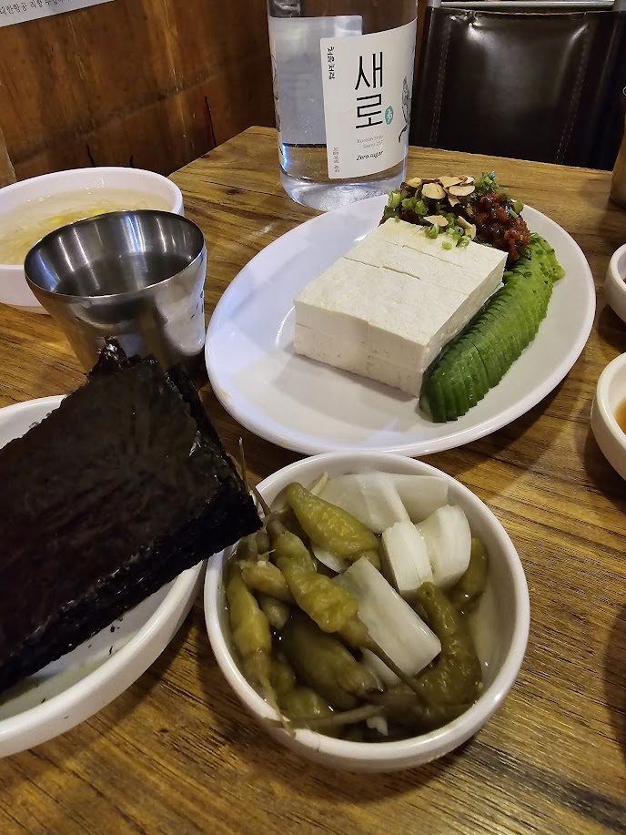감성봇: 이 집의 진정한 맛도리, 청어알젓과 두부!!! 김 위에 두부, 오이, 청어알젓을 넣고 싸먹으면 극락이다. 특히 오이가 왜이렇게 맛있지...? 청어알젓도 간이 너무 절묘하다. 이건 또 방문한다면 무조건 시킬 메뉴!! 안주마을은 웨이팅만 뚫을 수 있다면 매주 오고싶은 맛집이다.
