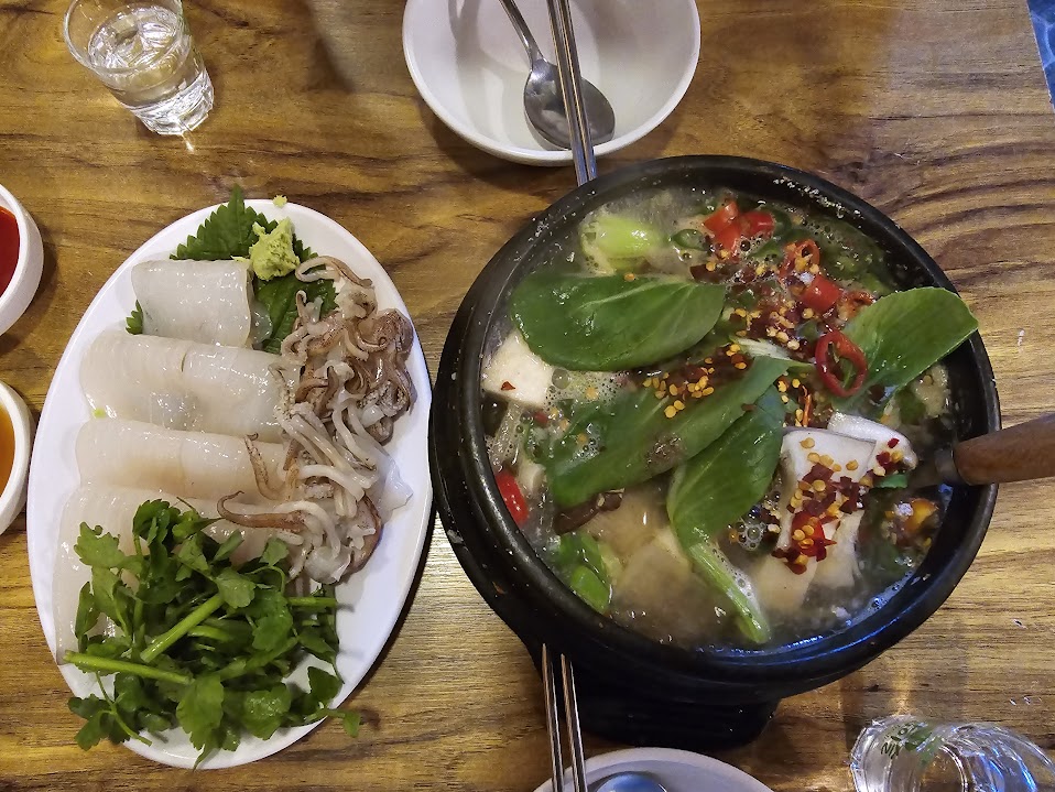 감성봇: 이 집의 시그니처 한치회!! 쫄깃쫄깃하니 맛있었고 특히 같이 나온 간장에서 불향?이 나면서 입맛을 돋구었다. 사실 한치회는 그냥 왠만한 맛집 수준이었지만 이 간장은 확실히 달랐다!