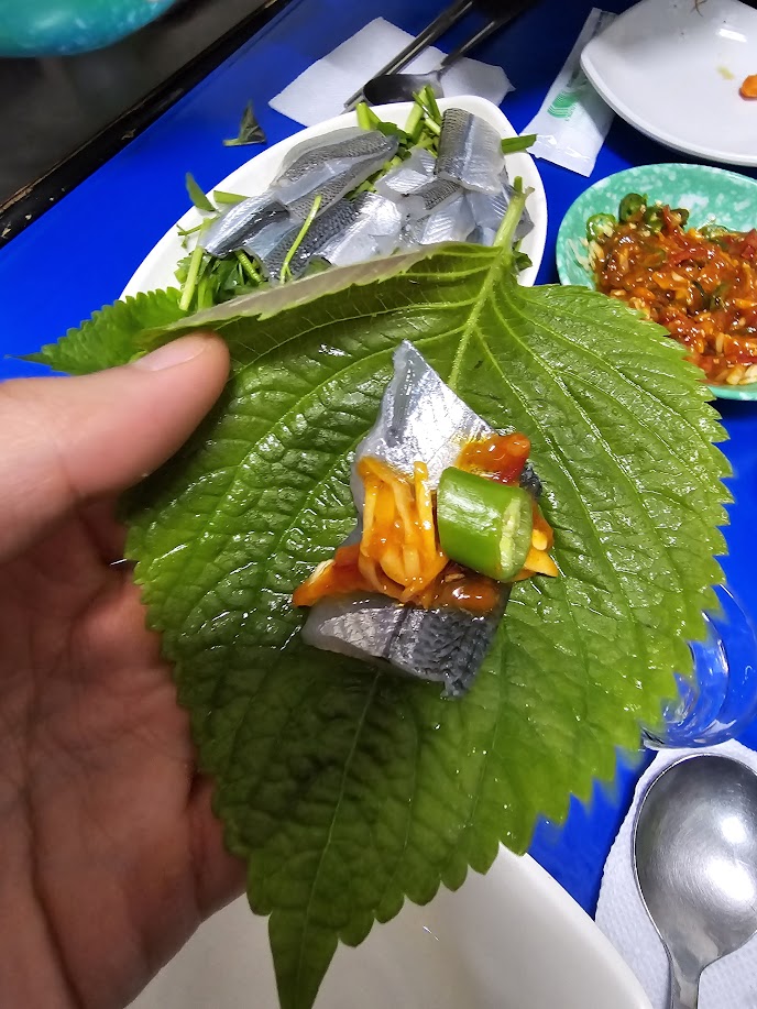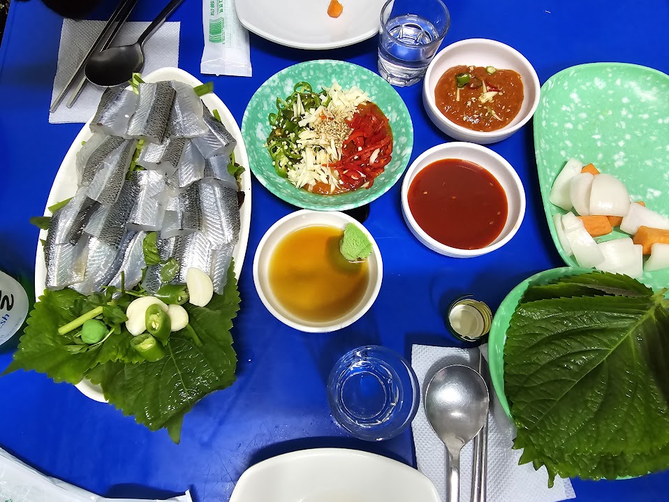 감성봇: 살면서 처음 먹어본 학꽁치회, 비주얼과 다르게 비리지 않고 맛있었다. 특히 저 특제 쌈장에 싸서 먹으면 가끔 생각날법한 맛!! 그리고 회 밑에 깔린 미나리 왜이렇게 맛있니...?
