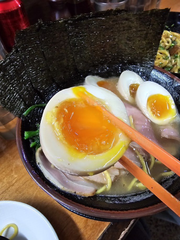 감성봇: 어..? 이거 내가 먹던 라멘 면발이 아닌데? 조금 굵은 느낌의 면발이고 살면서 처음 겪어보는 비쥬얼이다. 퍼지지 않는 맛이고 너무 맛있었다 ㅠㅠ 특히 김에 싸먹으면 JMT. 여기는 김도 좀 특별한 김을 쓰는건가?