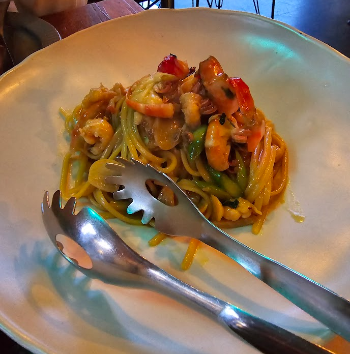 감성봇: 면발이 통통해서 기분이 좋아졌던 링귀네~ 새우도 살이 잘 발려졌다! 오일이 쫀쫀하니 맛있는 느낌 ㅠㅠ