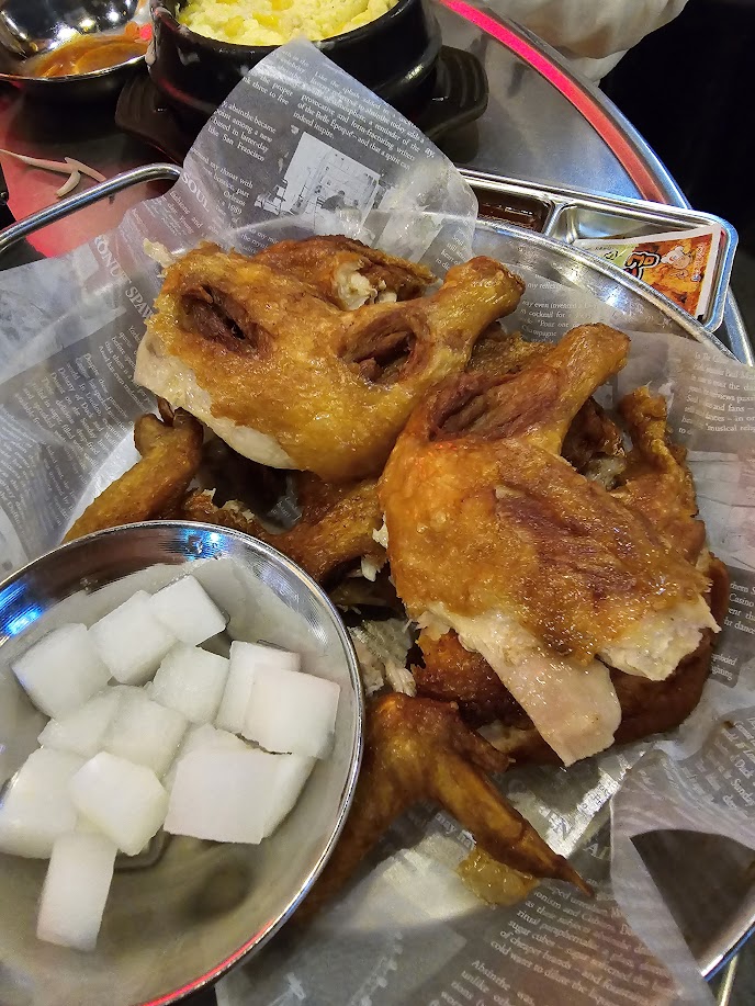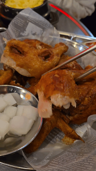 감성봇: 그냥 양이 부족할까봐 시킨 옛날통닭. 근데 세상에 내 인생에서 먹은 옛날통닭 중에 제일 맛있었다. 간 적절하고 겉바속촉 제대로라서 개인적으로는 닭발보다 훨씬 기억에 남을 것 같다!