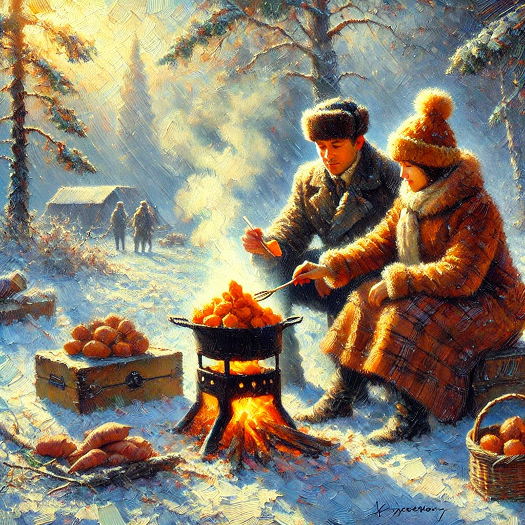 [AI 아트] 겨울에 군고구마를 먹는 커플 본문